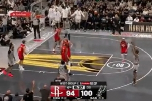 太低级!库明加直接将球传给场边观众 勇士白白送出球权